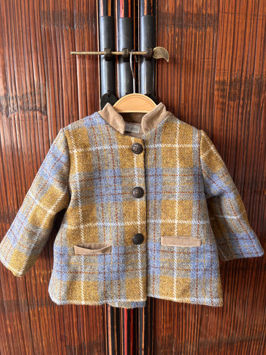 Austriaca Harris Tweed cuadros azul y amarillo.