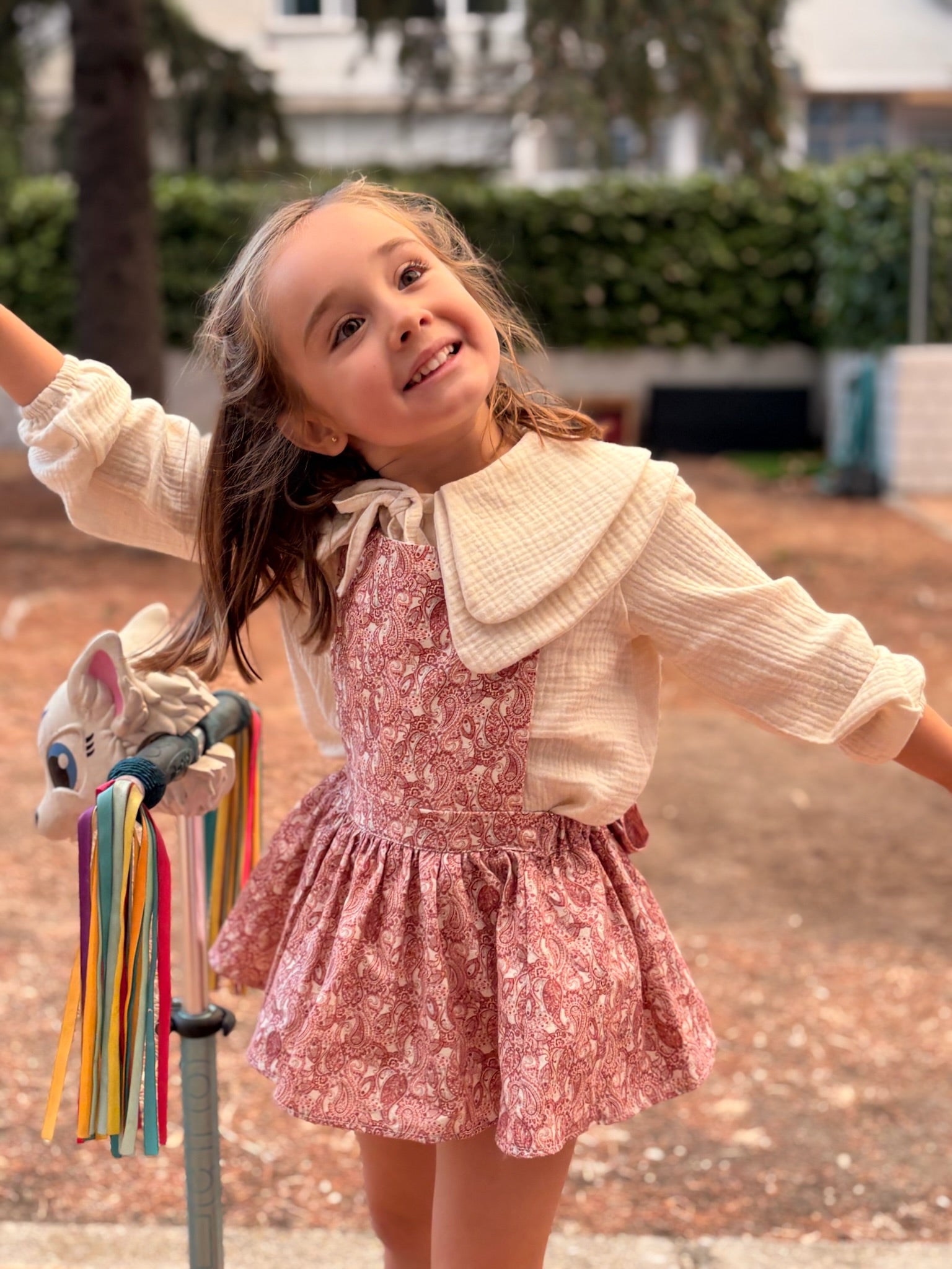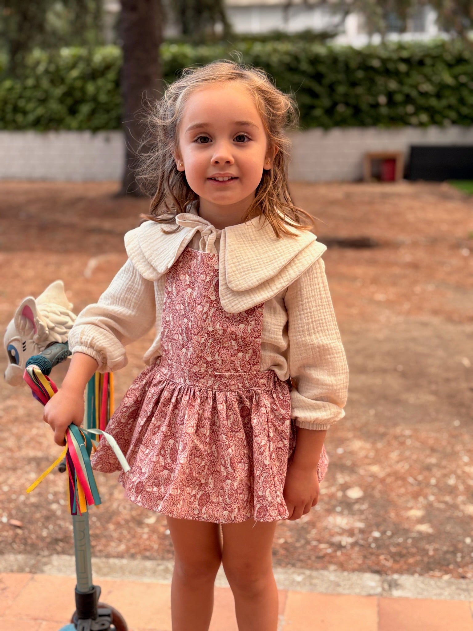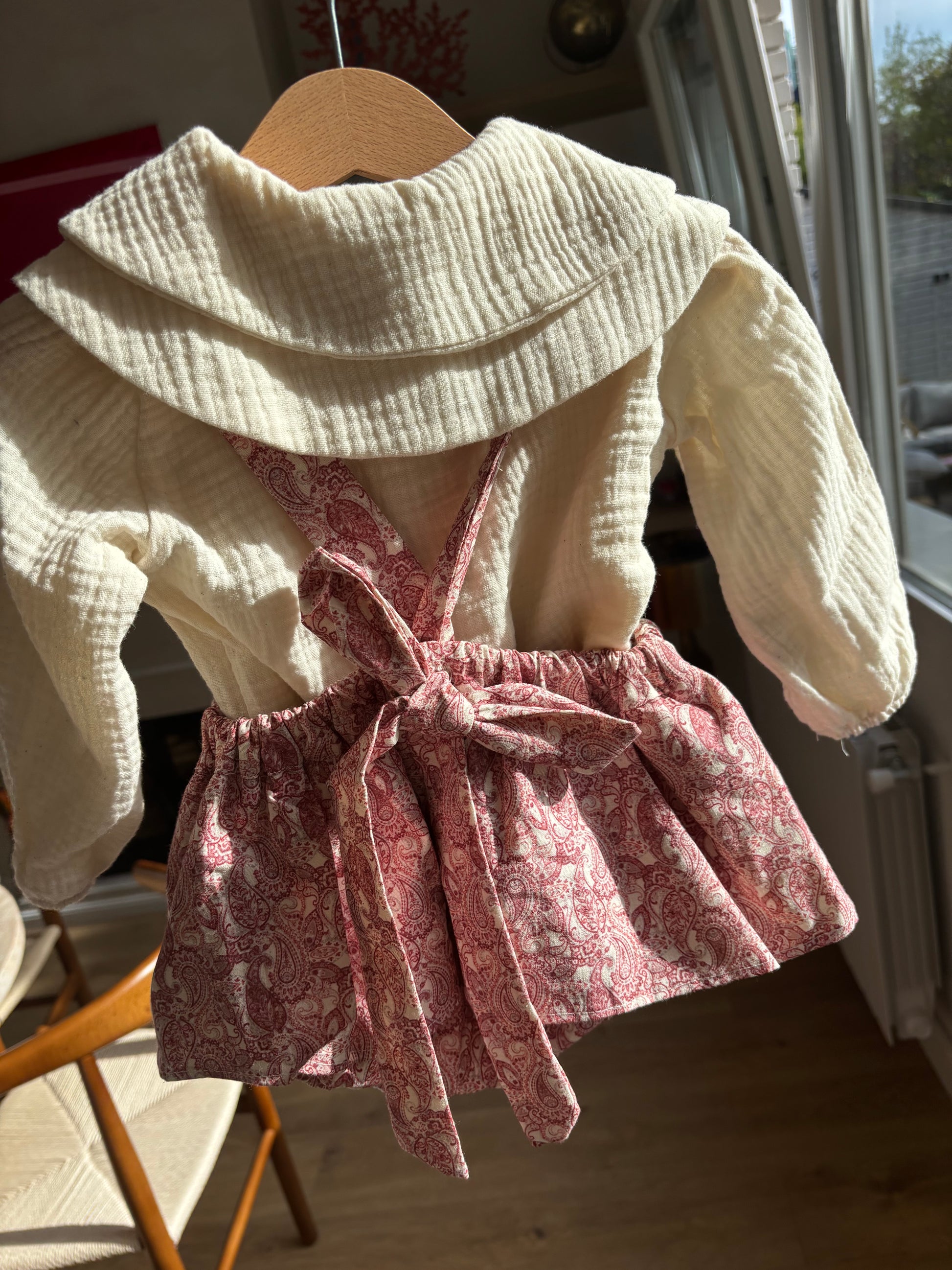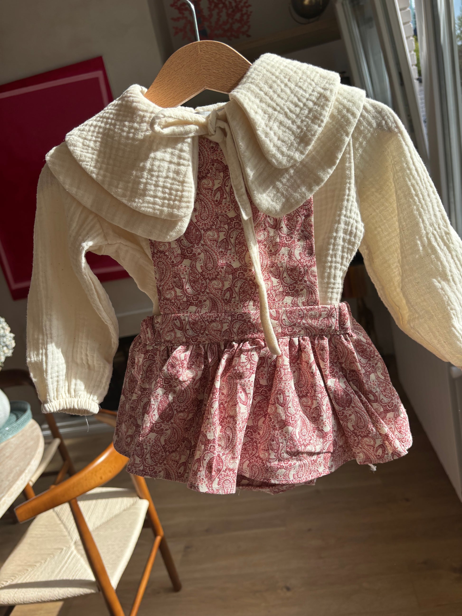 ¡No hay quién se resista a esta prenda! Peto faldita para nuestras niñas, es una prenda única, con un precioso estampado, sobre micro pana. Lleva cosido la braguita en la misma tela.