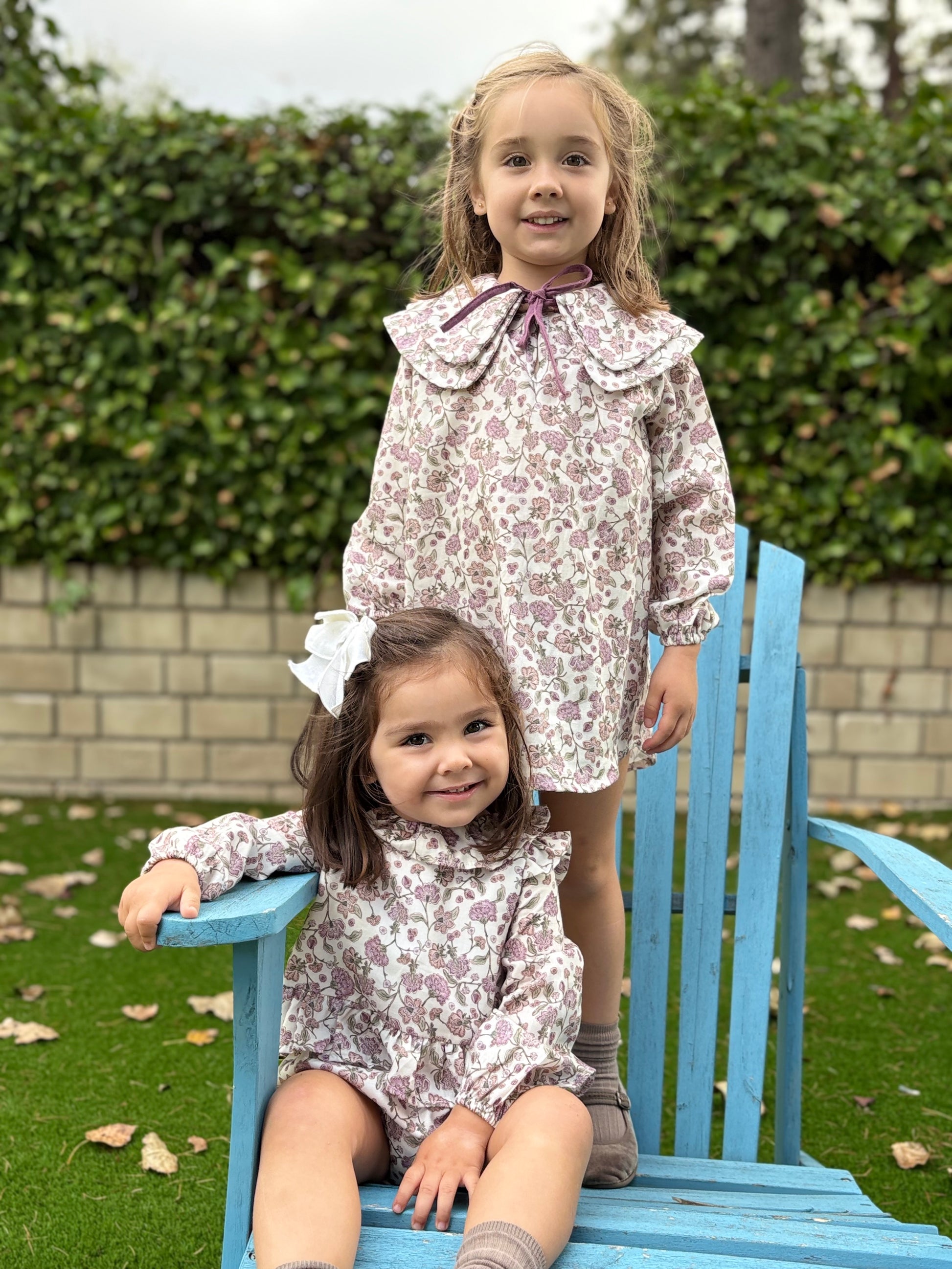 Combina hermanos con el Vestido Clavel y las Poleras Blambula Malva y Polera Bambula verde.