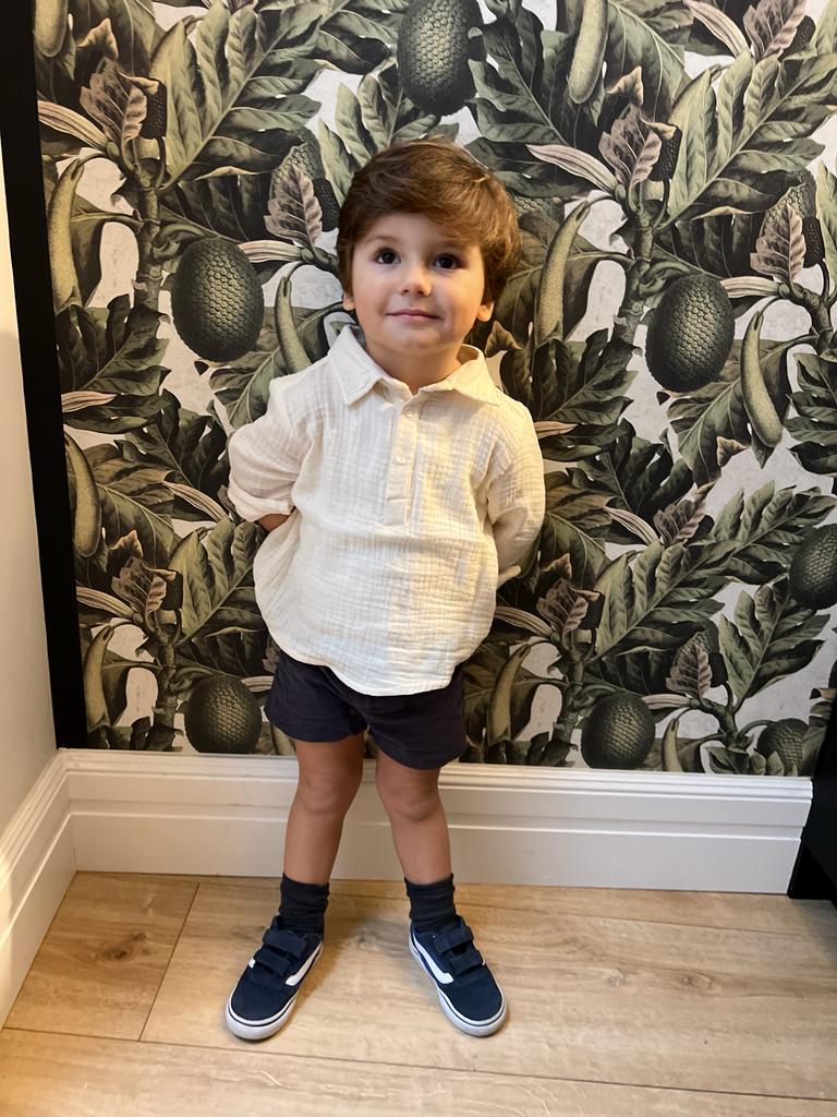 ¡Para los chicos de la casa! Esta Polera bambula color crudo es el perfecto fondo de armario puedes combinarla con nuestros pantalones cortos de micropana. Para conjuntar a los hermanos tenemos la Blusa bambula doble cuello crudo